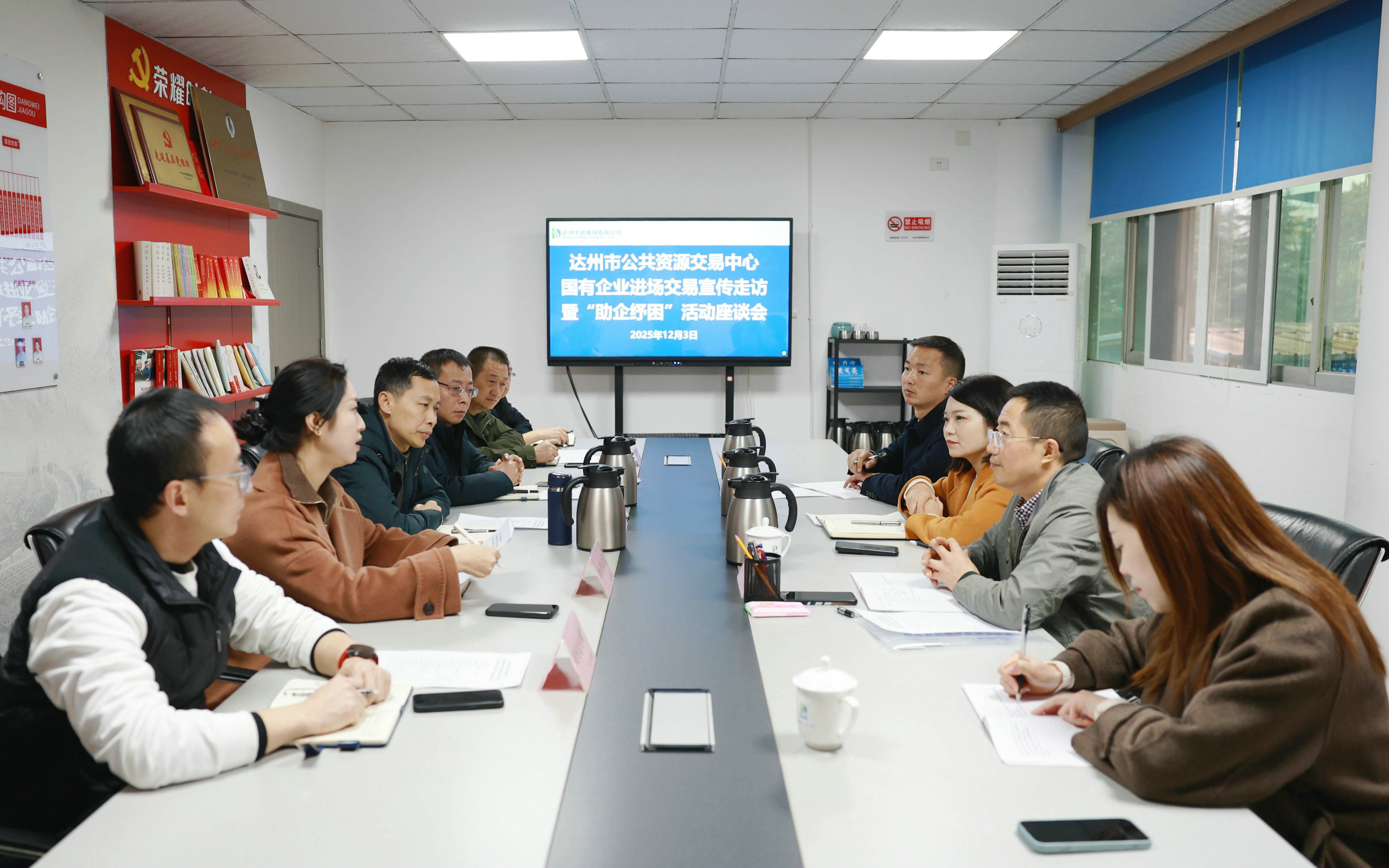 12月3日上午,市公共資源交易服務(wù)中心副主任陳曉云帶隊赴達(dá)州水務(wù)集團(tuán)開展國有企業(yè)進(jìn)場交易宣傳走訪暨“助企紓困”活動座談會,集團(tuán)黨委委員、副總經(jīng)理楊力寧,黨委委員、副總經(jīng)理、財務(wù)總監(jiān)朱亞成和集團(tuán)相關(guān)部門參加。