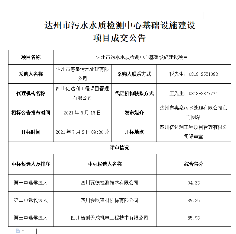 上一篇:達州市污水水質(zhì)檢測中心基礎(chǔ)設(shè)施建設(shè)項目成交公告